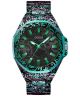 Guess Roar 46 mm GW0700G3 to męski zegarek, który wyróżnia się swoim nowoczesnym stylem. Czarna koperta ze stali szlachetnej ozdobiona wielokolorowymi wzorami lwa i kwiatów przyciąga wzrok swoją oryginalnością. Czarna tarcza, wyposażona w zielone wskazówki, tworzy elegancki kontrast z kolorowymi detalami. Bransoleta w tym samym stylu – czarna, z wielokolorowymi wzorami – dopełnia całość. Zegarek napędzany jest mechanizmem kwarcowym, a dzięki wodoszczelności 5 ATM jest odporny na drobne zachlapania, co sprawia, że nadaje się do codziennego użytku.