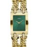 Zegarek damski Guess Mod Heavy Metal GW0740L2 to biżuteryjny model, w którym elegancja i dekoracyjny charakter odgrywają kluczową rolę. Złota koperta wykonana ze stali szlachetnej pokrytej powłoką PVD została połączona z bransoletą o wyrazistym, ozdobnym splocie. Zielona tarcza dodaje całości charakteru i nowoczesnego wykończenia. Wewnątrz pracuje mechanizm kwarcowy, a tarczę chroni szkło mineralne. Wodoszczelność 30 metrów oznacza odporność na niewielkie zachlapania, jednak model nie jest przeznaczony do zanurzania w wodzie. Całość tworzy propozycję dla kobiet, które traktują zegarek jako efektowny element stylizacji.