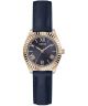 Zegarek damski Guess Mini Luna GW0761L2 to elegancki model o delikatnym i kobiecym charakterze, który dobrze sprawdza się jako stylowy dodatek na co dzień. Koperta ze stali szlachetnej PVD w kolorze różowego złota o szerokości 30 mm prezentuje się subtelnie na nadgarstku i harmonijnie współgra z granatowym, skórzanym paskiem. Granatowy cyferblat ze szlifem słonecznym został uzupełniony o cyfry rzymskie, nadając całości klasycznego wyglądu. Tarczę przykrywa mineralne szkiełko, które osłania ją przed działaniem czynników zewnętrznych. Za działanie produktu odpowiada mechanizm kwarcowy. Wodoszczelność 30 metrów oznacza odporność na drobne zachlapania, na przykład podczas mycia rąk. Model objęty jest 2-letnią gwarancją.