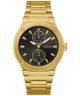 Guess Gold Stainless Steel 43 mm GW0795G4 to męski zegarek, łączący elegancję z funkcjonalnością. Koperta i bransoleta wykonane ze stali szlachetnej w złotym odcieniu nadają mu klasyczny wygląd. Czarna tarcza posiada datownik: w górnej części nazwa dnia tygodnia, a w dolnej – dzień miesiąca. Zatrzaskowe zapięcie z dodatkowym zabezpieczeniem gwarantuje komfort i bezpieczeństwo użytkowania. Zegarek napędzany jest mechanizmem kwarcowym. Zegarek jest wodoszczelny na poziomie 5 ATM, co pozwala na codzienne użytkowanie bez obaw o drobne zachlapania.