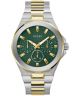 Guess Bicolor Stainless Steel 46 mm GW0798G3 to męski zegarek, który łączy w sobie nowoczesny design z klasycznym stylem. Bransoleta oraz koperta zostały wykonane ze stali szlachetnej i wyróżniają się połączeniem złotego i srebrego koloru. Zielona tarcza, ozdobiona złotymi wskazówkami, doskonale współgra z resztą zegarka. Zegarek oferuje funkcje czasu dobowego w formacie 12/24h oraz datownik, który wskazuje dzień miesiąca oraz nazwę dnia tygodnia. Bransoleta wyposażona jest w zapięcie zatrzaskowe z dodatkowym zabezpieczeniem, co zapewnia komfort i bezpieczeństwo noszenia. Zegarek jest napędzany kwarcowym mechanizmem. Wodoszczelność wynosi 5 ATM.