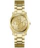 Zegarek damski Guess Annette GW0861L2 to model, który łączy klasykę z nowoczesnością. Koperta o szerokości 36 mm oraz bransoleta zostały wykonane ze stali szlachetnej w złotym kolorze, tworząc harmonijną całość. Tarcza w tym samym odcieniu jest przykryta mineralnym szkłem. Produkt jest napędzany mechanizmem kwarcowym, a jego wodoszczelność do 30 m chroni przed drobnymi zachlapaniami, takimi jak podczas mycia rąk.