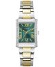 Zegarek damski Guess Bonnie GW0874L2 to wyjątkowy model, który łączy w sobie nowoczesny styl i funkcjonalność. Koperta zegarka jest wykonana ze stali szlachetnej w srebrnym kolorze, co nadaje mu elegancki wygląd. Tarcza w zielonym odcieniu przyciąga uwagę i jest przykryta mineralnym szkłem. Zegarek charakteryzuje się wodoszczelnością na poziomie 30 m, co sprawia, że jest odporny na drobne zachlapania. Bransoleta, również ze stali szlachetnej, ma kolor srebrno-złoty, co doskonale harmonizuje z całością. Szerokość koperty wynosząca 27 mm sprawia, że zegarek prezentuje się subtelnie na nadgarstku. To idealny wybór dla kobiet ceniących modny design i praktyczność w codziennym użytkowaniu.