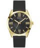 Zegarek męski Guess GW0894G2 z serii Classic to stylowy dodatek, który łączy w sobie elegancję i nowoczesne wzornictwo. Koperta zegarka ma złoty kolor i wykonana jest ze stali szlachetnej pokrytej powłoką PVD, co nadaje jej subtelny blask. Czarna tarcza przyciąga wzrok i jest przykryta mineralnym szkłem, które chroni ją przed uszkodzeniami. Zegarek jest wodoszczelny do 30 metrów, co zapewnia mu funkcjonalność w codziennym użytkowaniu. Skórzany pasek w kolorze czarnym doskonale uzupełnia całość, a szerokość koperty wynosząca 36 mm nadaje mu delikatny, ale wyrazisty wygląd. Dodatkowo, na tarczy znajdują się złote elementy, które tworzą harmonijne połączenie z całym designem.