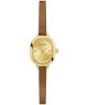 Zegarek damski Guess Penelope GW0925L2 to biżuteryjna propozycja o eleganckim, harmonijnym charakterze. Koperta wykonana ze stali szlachetnej pokrytej powłoką PVD w kolorze złota została zestawiona ze złotą tarczą, tworząc spójny efekt. Brązowy skórzany pasek dodaje całości klasycznego wykończenia i podkreśla subtelny styl modelu. Zegarek działa w oparciu o mechanizm kwarcowy, a tarczę chroni szkło mineralne. Wodoszczelność 30 metrów oznacza odporność na niewielkie zachlapania, dzięki czemu model sprawdzi się w codziennym użytkowaniu jako elegancki, biżuteryjny akcent.