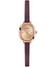Zegarek damski Guess Ladies Red Rose Gold Tone GW0925L3 wyróżnia się połączeniem różowego złota z fioletowym paskiem, co nadaje mu wyrazistego, a jednocześnie eleganckiego charakteru. Koperta ze stali szlachetnej została utrzymana w odcieniu różowego złota i zestawiona z dopasowaną kolorystycznie tarczą. Fioletowy pasek ze skóry dodaje modelowi unikalnego, modowego stylu. Mechanizm kwarcowy odpowiada za pracę zegarka, a szkło mineralne chroni tarczę. Wodoszczelność 30 metrów zapewnia ochronę przed niewielkimi zachlapaniami. To propozycja dla kobiet, które preferują biżuteryjne modele o delikatnych proporcjach i oryginalnej kolorystyce.