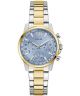 Zegarek damski Guess Bailey GW0933L3 zwraca uwagę dwukolorową kopertą i bransoletą utrzymaną w połączeniu złota i srebra, co nadaje mu elegancki, wyrazisty charakter. Niebieska tarcza prezentuje się estetycznie, a funkcje datownika dni miesiąca i dni tygodnia zwiększają praktyczność modelu na co dzień. Za jego działanie odpowiada mechanizm kwarcowy, a mineralne szkło stanowi ochronę tarczy. Wodoszczelność 30 metrów oznacza odporność na niewielkie zachlapania.