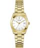 Zegarek damski Guess Ladies Gold Tone GW0934L2 to biżuteryjna propozycja w pełnym złotym kolorze, łącząca stalową kopertę PVD z dopasowaną bransoletą. Biała tarcza tworzy elegancki kontrast i została wyposażona w datownik dni miesiąca, który podnosi praktyczność modelu na co dzień. Mineralne szkło osłania cyferblat, a za pracę zegarka odpowiada mechanizm kwarcowy. Wodoszczelność 30 metrów chroni go przed niewielkimi zachlapaniami.