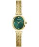 Guess Classic GW0935L2 to damski zegarek o wyrazistym charakterze, łączący złotą kopertę i bransoletę ze stali szlachetnej z intensywnie zieloną tarczą. Kwarcowy mechanizm Y121F1 odpowiada za działanie zegarka, a mineralne szkło chroni cyferblat przed czynnikami zewnętrznymi. Wodoszczelność 30 metrów zabezpiecza zegarek przed niewielkimi zachlapaniami, co czyni go odpowiednim do codziennego użytkowania.