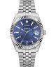 Zegarek męski Guess Suit & Time GW0977G1 to klasyczny model w srebrnym wykończeniu, uzupełniony o charakterystyczny żłobiony bezel. Koperta ze stali szlachetnej o szerokości 42 mm została połączona z dopasowaną bransoletą, tworząc spójną i elegancką całość. Tarcza w niebieskim kolorze nadaje zegarkowi wyrazistego charakteru, a jej funkcjonalność zwiększa datownik dni miesiąca. Mineralne szkło chroni cyferblat, natomiast mechanizm kwarcowy odpowiada za działanie modelu na co dzień. Wodoszczelność 50 metrów pozwala na krótkotrwały kontakt z wodą, na przykład podczas mycia rąk czy przypadkowego zanurzenia.