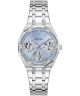 Zegarek dasmki Guess Pixie GW1009L1 to biżuteryjny model w srebrnym kolorze, wykonany ze stali szlachetnej i ozdobiony cyrkoniami na kopercie. Tarcza została wykończona szlifem słoneczny oraz okienkami typu open heart, które odsłaniają fragment pracy mechanizmu. Model wyposażono w mechanizm kwarcowy, szkło mineralne oraz datownik dni miesiąca i tygodnia. Bransoleta ze stali szlachetnej tworzy spójną całość z kopertą. Wodoszczelność 50 metrów oznacza ochronę podczas kontaktu z wodą, np. przy myciu rąk lub niewielkich zachlapaniach.