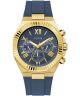 Guess Equity GW1011G2 to męski zegarek o wyrazistym, modowym charakterze. Koperta ze stali została utrzymana w złotym kolorze i zestawiona z niebieskim paskiem silikonowym, który nadaje modelowi sportowy wygląd. Niebieska tarcza dobrze komponuje się z paskiem i tworzy spójną kolorystycznie całość. Zegarek wyposażono w wskazanie dnia miesiąca oraz dnia tygodnia, które zwiększa funkcjonalność podczas codziennego użytkowania. Za ochronę tarczy odpowiada szkło mineralne. Za działanie zegarka odpowiada mechanizm kwarcowy. Wodoszczelność na poziomie 50 metrów oznacza odporność na zachlapania, na przykład podczas deszczu lub krótkotrwałego kontaktu z wodą.
