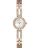 Guess Cassidy GW1016L4 to damski zegarek o biżuteryjnym charakterze i subtelnej konstrukcji. Koperta ze stali została utrzymana w kolorze różowego złota i połączona z bransoletą ze stali szlachetnej w tym samym odcieniu. Srebrna tarcza tworzy elegancki kontrast z ciepłą barwą koperty. Cyrkonie umieszczone na kopercie oraz elementach bransolety podkreślają dekoracyjny charakter modelu i nadają mu bardziej ozdobny wygląd. Za ochronę tarczy odpowiada szkło mineralne. Za działanie zegarka odpowiada mechanizm kwarcowy. Wodoszczelność na poziomie 30 metrów oznacza odporność na niewielkie zachlapania, na przykład podczas mycia rąk.