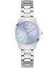 Guess Winni GW1028L1 to damski zegarek utrzymany w modowej stylistyce z klasycznym akcentem. Srebrna koperta ze stali szlachetnej została zestawiona z bransoletą w tym samym kolorze, co tworzy spójną i elegancką całość. Niebieska tarcza stanowi wyrazisty element całej kompozycji i nadaje modelowi charakterystyczny wygląd. Cyferblat pokrywa mineralne szkiełko, które osłania go przed działaniem czynników zewnętrznych. Za działanie zegarka odpowiada mechanizm kwarcowy. Wodoszczelność na poziomie 30 metrów oznacza odporność na drobne zachlapania, np. podczas mycia rąk lub w czasie niewielkiego deszczu.