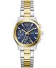 Zegarek damski Guess Birdie GW1031L3 przyciąga uwagę połączeniem dwóch kolorów metalu oraz wyrazistą tarczą. Model posiada kopertę ze stali szlachetnej w srebrno-złotej kolorystyce oraz dopasowaną bransoletę w tej samej stylistyce. Granatowy cyferblat kontrastuje z jasną kopertą i został wyposażony w datownik dnia miesiąca oraz dnia tygodnia. Tarczę osłania mineralne szkiełko chroniące ją przed działaniem czynników zewnętrznych. Model działa w oparciu o mechanizm kwarcowy. Wodoszczelność 50 metrów sprawia, że z zegarkiem można bez obaw brać prysznic lub kąpać się w wannie.