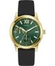 Guess Emerson GW1056G2 to męski zegarek utrzymany w eleganckiej stylistyce z wyraźnym akcentem kolorystycznym. Koperta ze stali szlachetnej w złotym kolorze harmonijnie współgra z czarnym paskiem silikonowym, nadając modelowi nowoczesnego charakteru. Zielony cyferblat zapewnia czytelny wygląd i został wyposażony w datownik dnia miesiąca oraz wskazanie czasu w formacie dobowym. Tarczę zabezpiecza mineralne szkło chroniące ją przed czynnikami zewnętrznymi. Za działanie produktu odpowiada mechanizm kwarcowy. Wodoszczelność na poziomie 30 m sprawia, że zegarek jest odporny na niewielkie zachlapania.