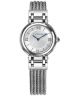 Herbelin Galet 17430BC28 to damski zegarek o klasycznej i subtelnej formie. Srebrna tarcza z delikatnym giloszowaniem została uzupełniona cyframi rzymskimi, co nadaje całości elegancki charakter. Koperta ze stali szlachetnej 316L w srebrnym kolorze ma 28 mm szerokości i polerowane wykończenie, które podkreśla jej smukłą linię. Do koperty dopasowano bransoletę w tym samym odcieniu, tworząc spójną kompozycję. Szkło szafirowe osłania cyferblat i chroni go przed działaniem czynników zewnętrznych. Zegarek działa w oparciu o mechanizm kwarcowy Ronda 751. Wodoszczelność 50 metrów oznacza odporność na krótkotrwały kontakt z wodą oraz większe zachlapania.