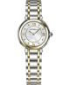 Zegarek damski Herbelin Galet 17430/BT59 przypadnie do gustu fankom klasycznych i eleganckich połączeń. Na ten utrzymany w srebrno-złotej kolorystyce model składają się koperta i bransoleta ze stali szlachetnej 316L oraz przykryta szkłem szafirowym tarcza z masy perłowej. Funkcję indeksów pełnią połyskujące kryształki. Odporny na większe zachlapania produkt działa w oparciu o mechanizm kwarcowy Ronda 751 Swiss Made.