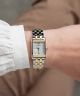 Wyróżnij się srebrno-złotym zegarkiem damskim Herbelin Art Déco 17478/T59B2T. Dodatek składa się z koperty, dopasowanej bransolety ze stali szlachetnej oraz tarczy udekorowanej masą perłową i kryształkami. Cyferblat został zabezpieczony twardym i przejrzystym szkłem szafirowym. Za prawidłowe odmierzanie godziny odpowiada szwajcarski mechanizm kwarcowy Ronda 751. Wodoszczelność oszacowano w klasie 5 ATM.