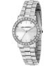 Zegarek damski Karl Lagerfeld Crystals R0553100511 przyciąga uwagę srebrną tarczą z efektem szlifu słonecznego, który zmienia sposób odbijania światła w zależności od kąta patrzenia. Koperta oraz bransoleta wykonane ze stali w tym samym kolorze tworzą jednolitą i elegancką kompozycję. Na cyferblacie znajduje się również subtarcza z sekundnikiem uzupełniająca układ wskazań. Zegarek działa w oparciu o mechanizm kwarcowy. Tarcza została pokryta szkłem mineralnym, które osłania ją przed działaniem czynników zewnętrznych. Smukła konstrukcja oraz modowy charakter projektu sprawiają, że model dobrze komponuje się z codziennymi i bardziej eleganckimi stylizacjami. Wodoszczelność 50 metrów pozwala korzystać z zegarka podczas kąpieli pod prysznicem lub w wannie.