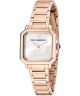 Zegarek damski Karl Lagerfeld Square Classics R0553102509 łączy kwadratową kopertę w kolorze różowego złota z dopasowaną bransoletą oraz srebrnym cyferblatem. Takie zestawienie kolorów nadaje modelowi elegancki, ale jednocześnie nowoczesny wygląd. Mineralne szkło pokrywa tarczę i zabezpiecza ją przed wpływem czynników zewnętrznych. Mechanizm kwarcowy napędza zegarek i odpowiada za jego działanie. Wodoszczelność 30 metrów pozwala na kontakt z niewielką ilością wody, jak zachlapania podczas codziennych czynności.