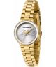 Karl Lagerfeld Kaiser R0553104508 to damski zegarek utrzymany w złotej kolorystyce, który wyróżnia się eleganckim i spójnym wyglądem. Koperta została zestawiona z bransoletą w tym samym odcieniu, co tworzy jednolitą całość. Srebrny cyferblat rozjaśnia projekt i dobrze kontrastuje ze złotą obudową. Mineralne szkiełko osłania tarczę przed działaniem czynników zewnętrznych. Zegarek działa w oparciu o mechanizm kwarcowy. Wodoszczelność na poziomie 50 metrów pozwala na korzystanie z modelu podczas kąpieli pod prysznicem lub w wannie.