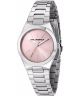 Karl Lagerfeld Hamburg R0553105510 to damski zegarek utrzymany w srebrnej kolorystyce, uzupełnionej różowym cyferblatem, który nadaje mu delikatny i bardziej subtelny charakter. Koperta została zestawiona z bransoletą w tym samym odcieniu, co tworzy spójną i elegancką całość. Jasna tarcza dobrze kontrastuje z obudową i wprowadza lekki akcent kolorystyczny. Mineralne szkiełko osłania cyferblat przed działaniem czynników zewnętrznych. Zegarek działa w oparciu o mechanizm kwarcowy. Wodoszczelność na poziomie 50 metrów pozwala na korzystanie z modelu podczas kąpieli pod prysznicem lub w wannie.