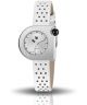 Zegarek damski Lip Mach 2000 Mini Moon 671191 zachwyca oryginalną formą i jakościowym wykonaniem. Koperta modelu ma kształt półksiężyca i jest wykonana ze szczotkowanej stali szlachetnej 316L. Połączono ją z paskiem uszytym z perforowanej skóry w kolorze białym. Szlifowaną tarczę osłania szkło mineralne. Mechanizm kwarcowy dba o poprawne działanie produktu.