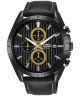 Zegarek męski Lorus Sports Chronograph RM309HX9 do działania napędza mechanizm kwarcowy VD57. Na czarnej tarczy z żółtymi elementami umieszczono chronograf, tachymetr i datownik dni miesiąca. Przed uszkodzeniami chroni ją szkiełko mineralne. Zakręcany dekiel i wodoszczelność 10 ATM sprawia, że można w nim pływać. Czarna koperta ze stali szlachetnej połączona jest z czarnym, skórzanym paskiem z żółtym przeszyciem.