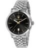 Maserati Epoca R8853118024 to elegancki męski zegarek kwarcowy, który łączy klasykę z nowoczesnym designem. Srebrna koperta i bransoleta wykonane ze stali szlachetnej nadają mu wyrafinowanego charakteru, a czarna tarcza z subtelnym szlifem słonecznym podkreśla jego wyjątkowy styl. Mechanizm kwarcowy japońskiej produkcji zapewnia precyzyjne działanie, co sprawia, że zegarek jest idealny na co dzień. Mineralne szkło chroni tarczę przed zarysowaniami, a wodoszczelność do 100 metrów czyni ten model praktycznym wyborem zarówno na formalne okazje, jak i do codziennego użytkowania.
