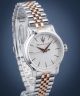 Jeśli cenisz sobie dodatki o subtelnym designie, to zegarek damski Maserati Epoca Maserati-R8853118520 jest doskonałą propozycją dla Ciebie. Na model składają się koperta oraz bransoleta wykonane ze stali szlachetnej i utrzymane dwóch barwach — srebrnej i różowego złota. Wodoszczelność na poziomie 100 m oznacza, że urządzenie jest odporne na zalanie podczas pływania powierzchniowego. Kwarcowy mechanizm wprawia produkt w ruch,