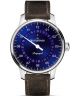 Zegarek męski MeisterSinger Perigraph - 38 mm Sunburst Blue BM1108_SV12 wprawia w ruch automatyczny mechanizm Sellita SW300 Swiss Made, którego rezerwa chodu liczy 42 godziny. Jego pracę odsłania zakręcany, przeszklony dekiel. Na pasku z zamszowej skóry w kolorze brązowym została umocowana stalowa koperta. Wypukłe szkło szafirowe chroni przed uszkodzeniem niebieską tarczę. Ten jednowskazówkowy model wyróżnia oryginalny datownik w postaci pomarańczowej strzałki znajdującej się na wysokości godziny dwunastej.