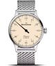 MeisterSinger Pangaea Ivory Automatic PM9903_MIL20 to jednowskazówkowy zegarek męski utrzymany w srebrno-beżowej kolorystyce. Tarcza z dwucyfrowymi oznaczeniami została zabezpieczona wypukłym szkłem szafirowym. Przez zakręcany, transparentny dekiel można zobaczyć jak pracuje szwajcarski mechanizm automatyczny Sellita SW300 osadzony na 25 kamieniach z 42-godzinną rezerwą chodu. Wodoszczelność oceniono na poziomie 5 ATM.