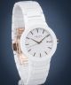 Zegarek Obaku Pil - Lille Milk V280LDWWCW to model dla pań, które poszukują oryginalnych dodatków do swoich stylizacji. Produkt wykonano ze spieku ceramicznego. Biały odcień tarczy i obudowy przełamują różowozłote znaczniki. Do tego zegarek ma funkcję daty.