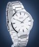 Pacific-PC00044 to zegarek o srebrnej tarczy na której wyraźnie odznaczają się indeksy liniowe. Tarcza osadzona została w okrągłej, srebrnej kopercie połączonej ze srebrną bransoletą.