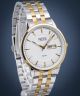 Pacific PC00467 to męski zegarek, który został wyposażony w mechanizm kwarcowy Miyota 2315-5. Dwukolorowa, stalowa bransoleta stanowi świetne zestawienie z białą tarczą, na której widnieją analogowe wskazówki i liniowe indeksy godzinowe. Na godzinie trzeciej widnieje datownik dni miesiąca oraz tygodnia. Dzięki takiemu zastosowaniu każdy użytkownik może cieszyć się z dokładnego monitorowania czasu. Pacific-PC00467 będzie idealnym modelem na okazje formalne, jak i codzienne. Produkt jest objęty dwuletnią gwarancją.