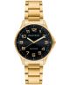 Pacific Sapphire PC00745 to elegancki męski zegarek o ponadczasowym charakterze. Koperta ze stali szlachetnej w złotym kolorze podkreśla klasyczny wygląd czarnej tarczy. Mechanizm kwarcowy Miyota 2035 zapewnia komfortowe działanie, a szafirowe szkło zwiększa odporność na codzienne użytkowanie. Całość uzupełnia złota bransoleta ze stali szlachetnej, która nadaje modelowi prestiżowego wyglądu. Wodoszczelność 30 metrów chroni zegarek przed przypadkowymi zachlapaniami powstałe np. podczas mycia rąk.