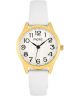 Zegarek damski Pacific Classic PC00782 to stylowy dodatek, który łączy elegancję z funkcjonalnością. Działanie zegarka napędza mechanizm kwarcowy MIYOTA 2035. Posiada złotą kopertę wykonaną ze stali szlachetnej, co nadaje mu wyjątkowego charakteru. Tarcza w srebrnym kolorze jest przykryta mineralnym szkłem, które jest odporne na uszkodzenia. Zegarek ma skórzany, biały pasek, który doskonale kontrastuje z kopertą, tworząc harmonijną całość. Szerokość koperty wynosi 30 mm, co sprawia, że zegarek jest subtelny i delikatny. Dodatkowo, zegarek charakteryzuje się wodoszczelnością do 30 m, co oznacza, że jest odporny na drobne zachlapania. To idealny wybór dla kobiet ceniących sobie modny design oraz praktyczność w jednym.