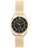 Zegarek damski Perfect Fashion PF00120 to elegancja i modna forma, która dopasuje się z powodzeniem do uniwersalnych i formalnych stylizacji. Zestawienie złotej koperty z metalu ze złotą bransoletą mesh i czarną tarczą nada stylizacjom nowoczesnego sznytu. Zegarek ten spakowano w oryginalne pudełko. Maksymalny obwód zegarka, łącznie z bransoletą i kopertą, wynosi 19 cm.