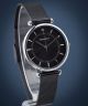 Perfect Classic PF00294 to damski zegarek o srebrnej kopercie z metalu i czarnej, meshowej bransolecie wygodnie układającej się na nadgarstku. Na prostej, czarnej tarczy umieszczono kryształek na godzinie 12. Model opiera swoje działanie o mechanizm kwarcowy Miyota 2035.