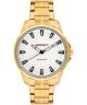 Zegarek męski Perfect Classic 45 mm PF00760 to stylowy dodatek. Posiada złotą kopertę wykonaną ze stali szlachetnej. Srebrna tarcza jest przykryta mineralnym szkłem. Złota bransoleta, również ze stali szlachetnej, doskonale komponuje się z całością. Produkt ma wodoszczelność do 30 m, co pozwala na jego użytkowanie w codziennych sytuacjach, np. podczas mycia rąk. Całość jest zasilana mechanizmem kwarcowym.