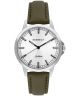 Zegarek damski Perfect PF00858 z serii Classic posiada kopertę wykonaną ze stali szlachetnej w srebrnym kolorze o szerokości 35 mm. Tarcza zegarka jest srebrna i przykryta mineralnym szkłem. W zegarku zastosowano mechanizm kwarcowy MIYOTA 2035. Pasek wykonany jest ze skóry w zielonym kolorze, co nadaje mu delikatny i naturalny wygląd. Zegarek ma wodoszczelność 30 m, co chroni go przed niewielkimi zachlapaniami. Model ten łączy prostotę i funkcjonalność, oferując klasyczny design w stonowanych barwach.