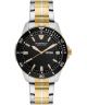 Zegarek męski Perfect PF00933 z serii Classic to model wyposażony w kwarcowy mechanizm MIYOTA 2035. Koperta o szerokości 45 mm wykonana jest ze stali szlachetnej w kolorze srebrno-złotym. Tarcza zegarka ma czarny kolor i jest przykryta mineralnym szkłem. Bransoleta, również ze stali szlachetnej, ma ten sam srebrno-złoty odcień co koperta, co tworzy spójną całość. Zegarek ma wodoszczelność 30 m, co chroni go przed niewielkimi zachlapaniami. Model ten łączy trwałe materiały z prostym, klasycznym wyglądem.