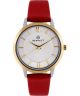 Zegarek damski Perfect Classic PF01012 to model łączący kopertę w kolorze srebrno-złotym z czerwonym paskiem skórzanym. Koperta wykonana ze stali szlachetnej ma średnicę 30 mm i grubość 8 mm, a pasek o szerokości 14 mm dobrze dopełnia całość. Wewnątrz zastosowano mechanizm kwarcowy Miyota 2035, a tarczę chroni szkło mineralne. Wodoszczelność do 30 metrów zabezpiecza zegarek przed drobnymi zachlapaniami.