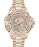 Zegarek damski Philipp Plein The Skull PWNAA1623 utrzymany jest w całości w kolorze różowego złota, tworząc spójny i efektowny wygląd. Koperta ze stali szlachetnej o średnicy 41 mm została pokryta powłoką PVD i wykończona szczotkowaniem, co nadaje jej subtelny, nowoczesny charakter. Stalowa bransoleta w dopasowanym kolorze harmonijnie łączy się z kopertą, podkreślając elegancki styl zegarka. Model działa w oparciu o mechanizm kwarcowy i wyposażony jest w szkło mineralne. Wodoszczelność na poziomie 50 metrów chroni zegarek przed zachlapaniami w codziennym użytkowaniu.