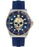 Zegarek męski Philipp Plein Skull Diver PWOAA0222 to model łączący sportowy charakter z wyrazistym akcentem kolorystycznym. Koperta ze stali szlachetnej o średnicy 44 mm w srebrnym kolorze zestawiona została z niebieskim silikonowym paskiem o szerokości 22 mm, co nadaje zegarowi dynamiczny wygląd. Tarczę chroni mineralne szkło, a wodoszczelność do 100 metrów pozwala na używanie zegarka podczas pływania i sportów wodnych. Wewnątrz koperty o grubości 12 mm pracuje mechanizm kwarcowy. Srebrny bezel dopełnia całości, tworząc spójną kolorystykę z kopertą. Model przeznaczony jest dla mężczyzn ceniących rozpoznawalny design marki w sportowej odsłonie.