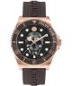 Zegarek męski Philipp Plein Skull Diver PWOAA0322 to model łączący sportowy charakter z eleganckim wykończeniem w kolorze różowego złota. Koperta ze stali szlachetnej o średnicy 44 mm pokryta została powłoką PVD, która nadaje jej charakterystyczny odcień i zwiększa odporność na uszkodzenia. Czarny silikonowy pasek o szerokości 22 mm tworzy efektowny kontrast z kopertą, oferując jednocześnie wygodę podczas codziennego noszenia. Tarczę chroni mineralne szkło, a wodoszczelność do 100 metrów pozwala na używanie zegarka podczas pływania i sportów wodnych. Wewnątrz koperty o grubości 12 mm pracuje mechanizm kwarcowy. Bezel w kolorze różowego złota dopełnia całości, tworząc spójną kolorystykę z kopertą.