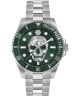 Zegarek męski Philipp Plein Skull Diver PWOAA0622 stanowi propozycję dla miłośników zegarków z charakterem. Koperta oraz bransoleta wykonane zostały ze stali szlachetnej i wykończone szczotkowaniem. Wymiary koperty to 44 mm średnicy przy 12 mm grubości, natomiast bransoleta ma 22 mm szerokości. Kwarcowy mechanizm odpowiada za działanie zegarka, a tarcza zabezpieczona jest mineralnym szkłem. Wodoszczelności na poziomie 100 metrów pozwala na kontakt z wodą podczas codziennych sytuacji oraz sportów wodnych. Srebrny bezel wpisuje się w jednolitą kolorystykę całego modelu, tworząc spójną kompozycję typową dla estetyki Philipp Plein.