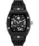 Zegarek męski Philipp Plein The Skeleton Eco Automatic PWVBA0423 to model wykonany ze spieku ceramicznego w monochromatycznej czarnej stylistyce. Koperta o średnicy 44 mm z matowym wykończeniem połączona została z czarnym silikonowym paskiem o szerokości 19 mm. Ceramiczny bezel w czarnym kolorze dopełnia całości. Za działanie modelu odpowiada mechanizm automatyczny, a mineralne szkło chroni tarczę. Wodoszczelność 50 metrów zabezpiecza przed zachlapaniami. Grubość koperty wynosząca 14 mm nadaje modelowi wyraziste proporcje. To propozycja dla mężczyzn ceniących nowoczesne materiały w sportowym wydaniu.
