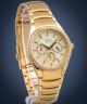 Zegarek damski Pierre Ricaud P21032.1111QFZ to elegancki model, który zachwyca biżuteryjnym charakterem i klasycznym stylem. Na uwagę zasługuje ciekawa faktura tarczy w złotym odcieniu, uzupełniona pasem błyszczących cyrkonii wokół jej obwodu, które dodają całości wyjątkowego blasku. Koperta o okrągłym kształcie i szerokości 35 mm oraz grubości 10 mm została wykonana ze stali szlachetnej pokrytej powłoką PVD w złotym kolorze, a całość uzupełnia dopasowana bransoleta z tym samym wykończeniem, zamykana na zapięcie motylkowe. Zegarek wyposażono w kwarcowy mechanizm Seiko, który zapewnia precyzyjne odmierzanie czasu, a dodatkowym atutem jest funkcjonalny multi-datownik wskazujący zarówno dzień miesiąca, jak i nazwę dnia tygodnia. Mineralne szkło skutecznie chroni tarczę przed zarysowaniami, a wodoszczelność 30 m zabezpiecza model przed drobnymi zachlapaniami. Maksymalny obwód zegarka wraz z bransoletą wynosi 21 cm, a jej szerokość przy kopercie to 21 mm. Całość waży 113 g, co sprawia, że zegarek jest solidny, a jednocześnie wygodny w codziennym użytkowaniu. Pierre Ricaud P21032.1111QFZ to propozycja o europejskim pochodzeniu, stworzona dla kobiet, które cenią elegancję, subtelny luksus i zegarki pełniące również funkcję biżuterii. Model objęty jest dwuletnią gwarancją producenta.